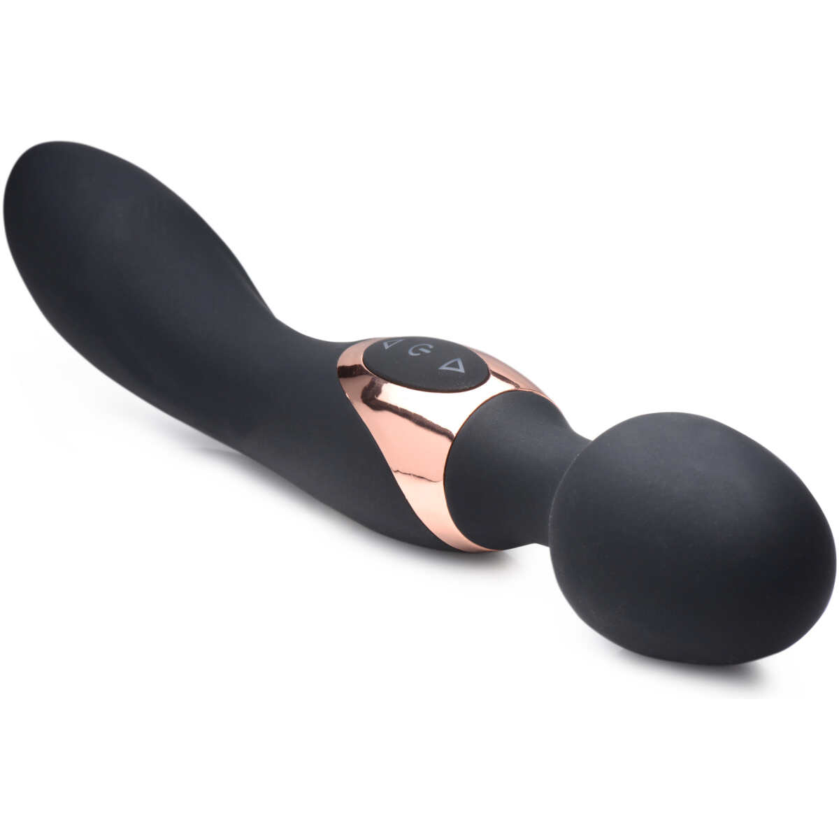 Enjoy both ends of this classy 2 in 1 silicone massage wand! This double ended vibrator comes with a classic massage head with a flexible neck on one end, and a deliciously curved silky smooth vibrating handle for a wider contact area and penetration possibilities!