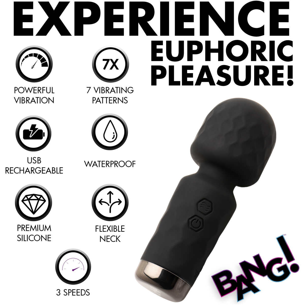 This is for the discreet hedonists. For those always ready for fun. This is for those travelers who bring their toys along. For the overnight stays and nights you get lucky. This mini wand fits perfectly between you and your partner for steamy sessions where just a little more stimulation does the trick. It fits in purses, bags and deep pockets. Made from premium silicone, it’s phthalate-free, silky smooth and soft against sensitive skin. The flexible neck bends in just the right angles. Enjoy 3 speeds and 7 patterns of vibrating bliss on any body part that craves a little more attention. It’s splashproof, too! It can handle gentle sprays of water or other fluids. After your self-love session, simply wash it with warm water and mild soap, then spray it with a toy cleaner and pat dry.