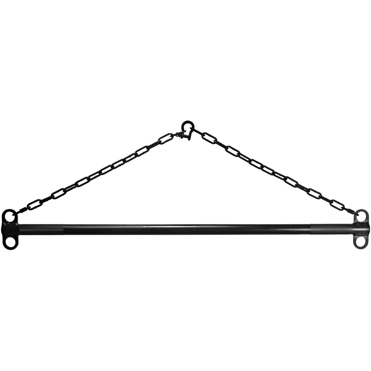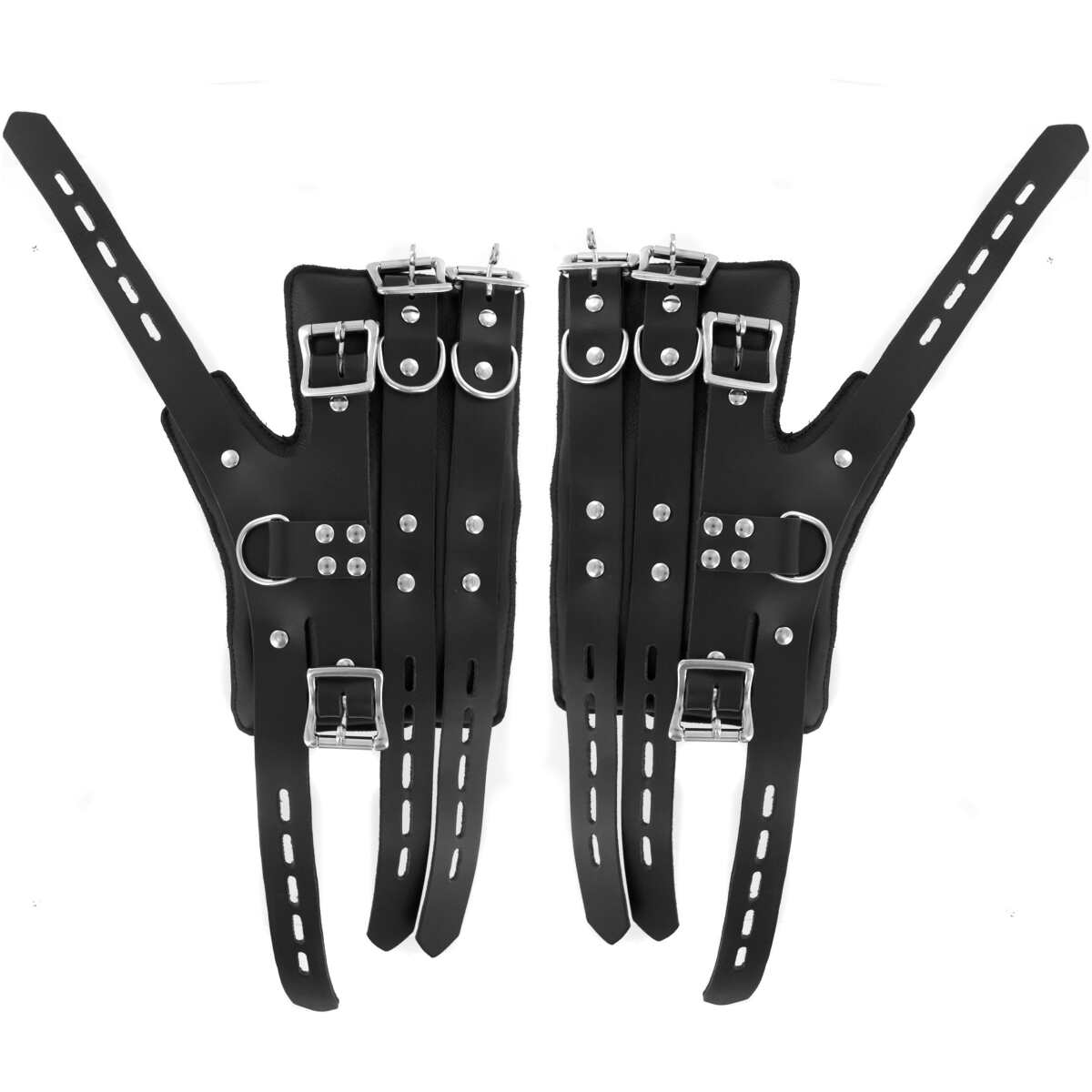 This all in one suspension kit features two top of the line, comfortable, durable, and secure leather cuffs, with an ultra heavy duty black bondage bar so you can string them up and leave them completely at your mercy. You can attach the cuffs to the bar with rope, carabiners, snap hooks, or however you wish. Hang the bar from the ceiling or a supportive frame, it is designed to take weight without bending or warping. This top of the line bondage kit contains the essentials to get started with suspension play.