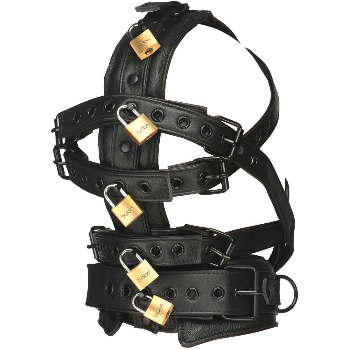 This vegan leather head harness with a muzzle is the perfect accessory for any BDSM enthusiast. Made to look and feel like real leather, it ensures both style and comfort. The harness is padded, providing extra ease with its cushioned straps designed for those intense, prolonged sessions. It’s fully adjustable, allowing for a tailored fit around the head and face, and features locks to secure the straps and keep your submissive restrained. The muzzle snugly covers the mouth and chin, while D-rings on the muzzle and collar offer additional points for attaching leashes or chains. Ideal for controlled, intimate experiences.