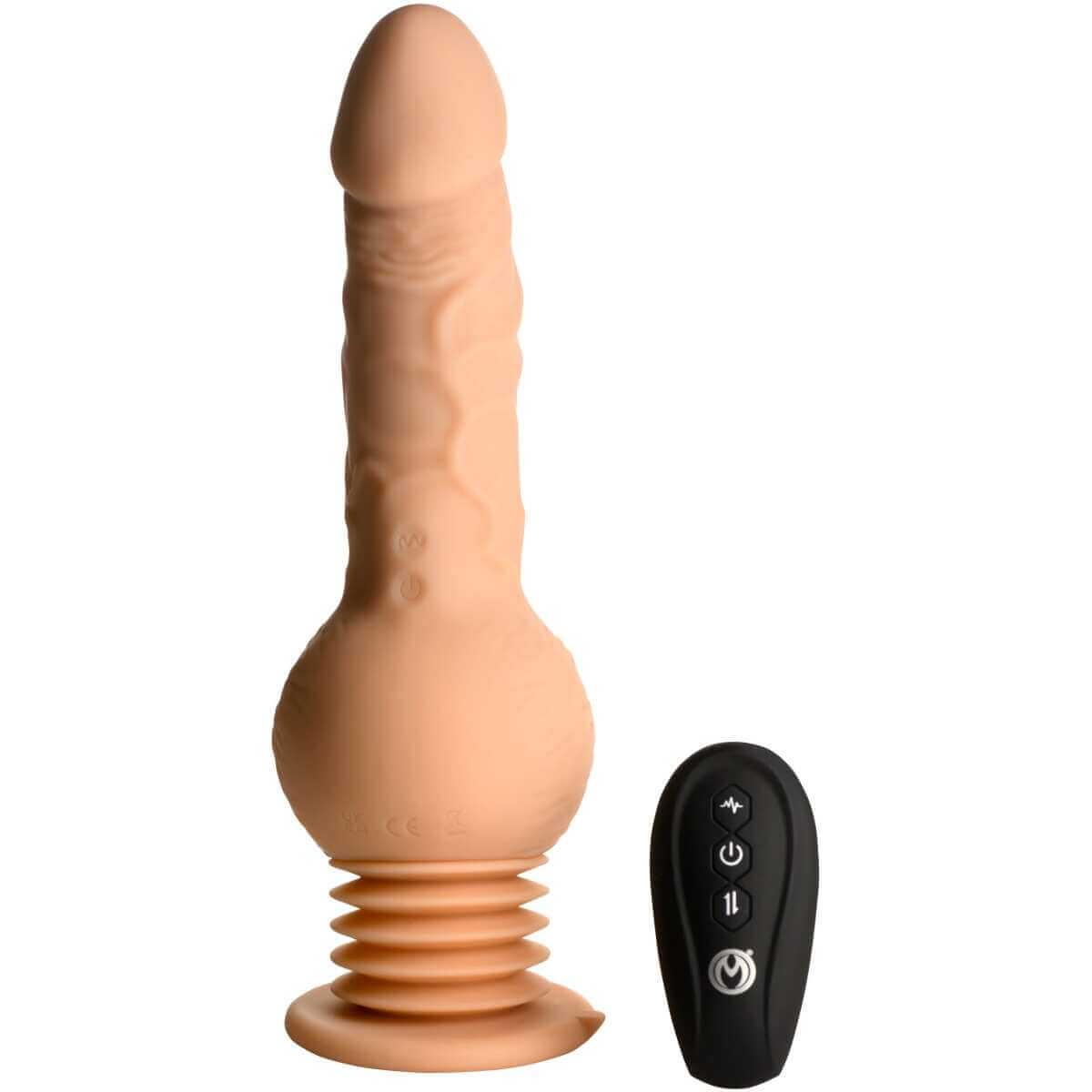 Ride your way to ecstasy with the Passion Pounder Thrusting Sex Shaker! Its auto-thrusting and gyrating motor simulates thrusting with 3 speeds and 7 vibration patterns to explore. Enjoy hands-free rides thanks to the secure suction cup base that sticks to any flat surface. The light-colored dong features a lifelike design, including a mushroom tip and a veined shaft for a truly realistic experience. Crafted from premium, phthalate-free silicone, it’s body-safe and silky-smooth. Easily switch settings from up to 16 feet away with the remote control. Waterproof and rechargeable, it’s perfect for both the shower and the tub, delivering reliable pleasure every time.