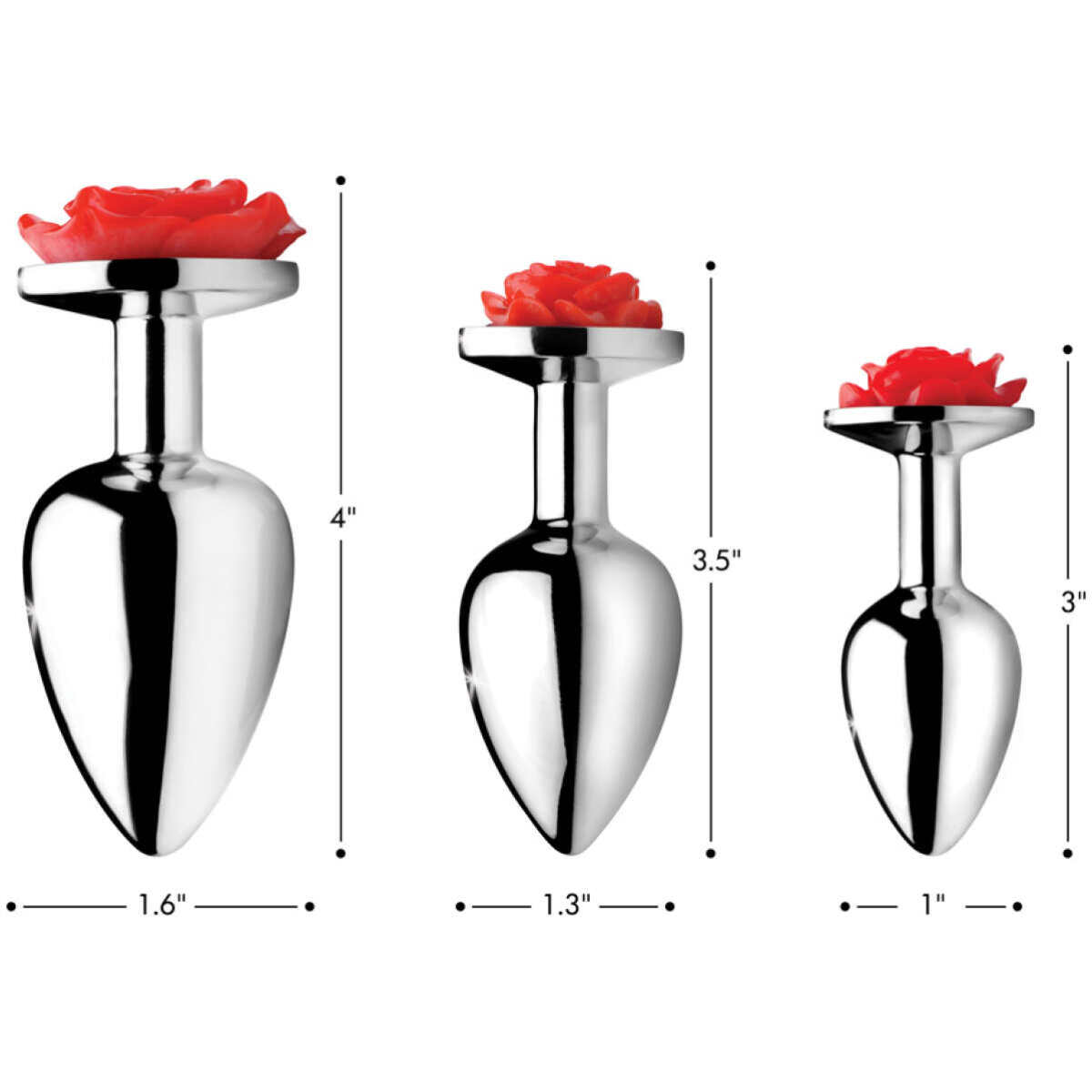 Beautify your booty with this shining red rose! Featuring a smooth metal finish in lightweight aluminum, it features a lovely rose flower at the end which will flash as you bend over and tease your lover. The slim shaft will keep it from slipping out of place even during vigorous play. The nickel free aluminum alloy is nicely weighted and temperature sensitive for the perfect amount of sensation. When play is over, the non-porous material will clean easily without harboring any harmful bacteria. Make that booty bloom like a rose!
