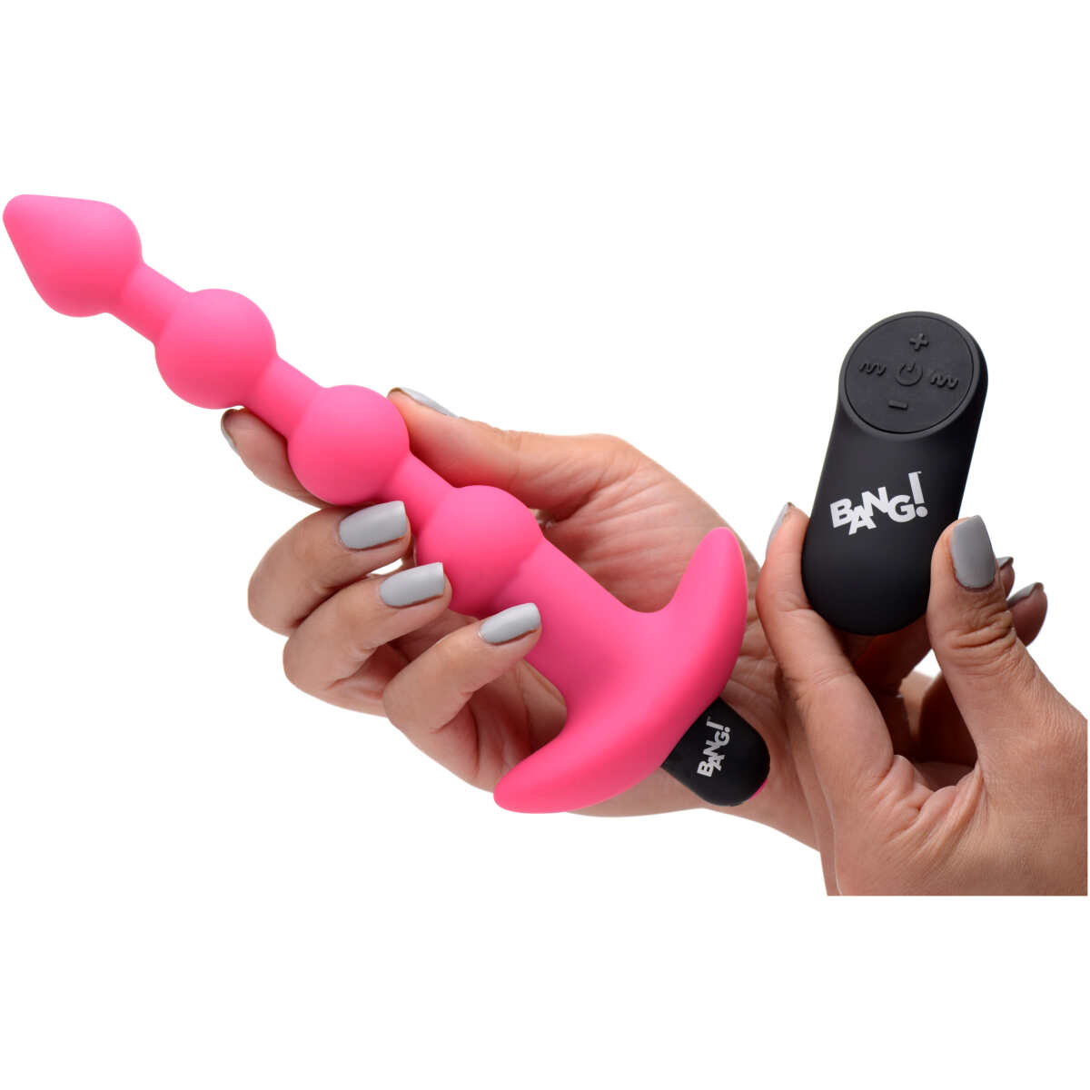 The IPX7 waterproof design of these Bang Beads makes it easy to play in the shower for some steamy anal fun, but also make it easy to clean when the session is over! Clean with warm water and mild soap.