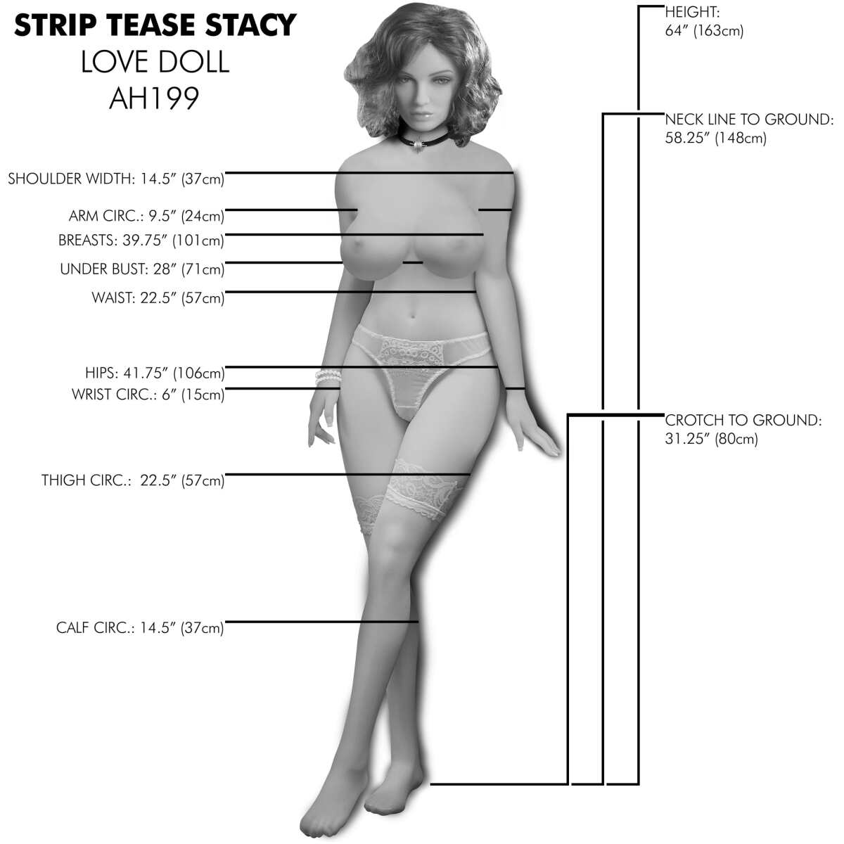 Stacy is here to make your wild fantasies come true! This SexToyDistributing Exclusive doll is designed to bring your strip club fantasies to life! Let her give you a strip tease and show off her large, heavy breasts and perky, upturned nipples. As she dances for you, enjoy her heavy lidded, light hazel eyes, her pouting, full lips with just the barest hint of a mischievous smile that waits to wrap her mouth around your rod, and her round, full bottom. As she does the splits for you and slips off her clothing, you can see the soft folds of her flowery, pink lips and the open hole of her rear entry. From her manicured nails to her delicate, small feet she is ready to be worshiped and adored. She’s a true dream-girl who’s more than happy to come home with you!