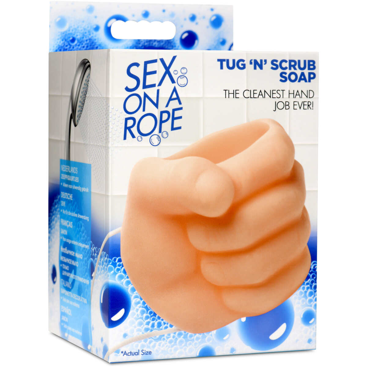 For friends with dirty minds, the best way to get clean is with a naughty gag gift of Tug ‘n Scrub soap! This peach colored soap hangs on a nylon rope so you can keep it from losing its shape between uses (as some soaps do when placed in a soap dish). This soap is shaped like a firmly gripped hand with a hollow tube in the center. It’s the perfect place to insert any cylinder-shaped objects and scrub them really clean with a few tugs and strokes! This soap is lightly scented and moisturizes the skin with each use. Sneak this into a gift basket today!