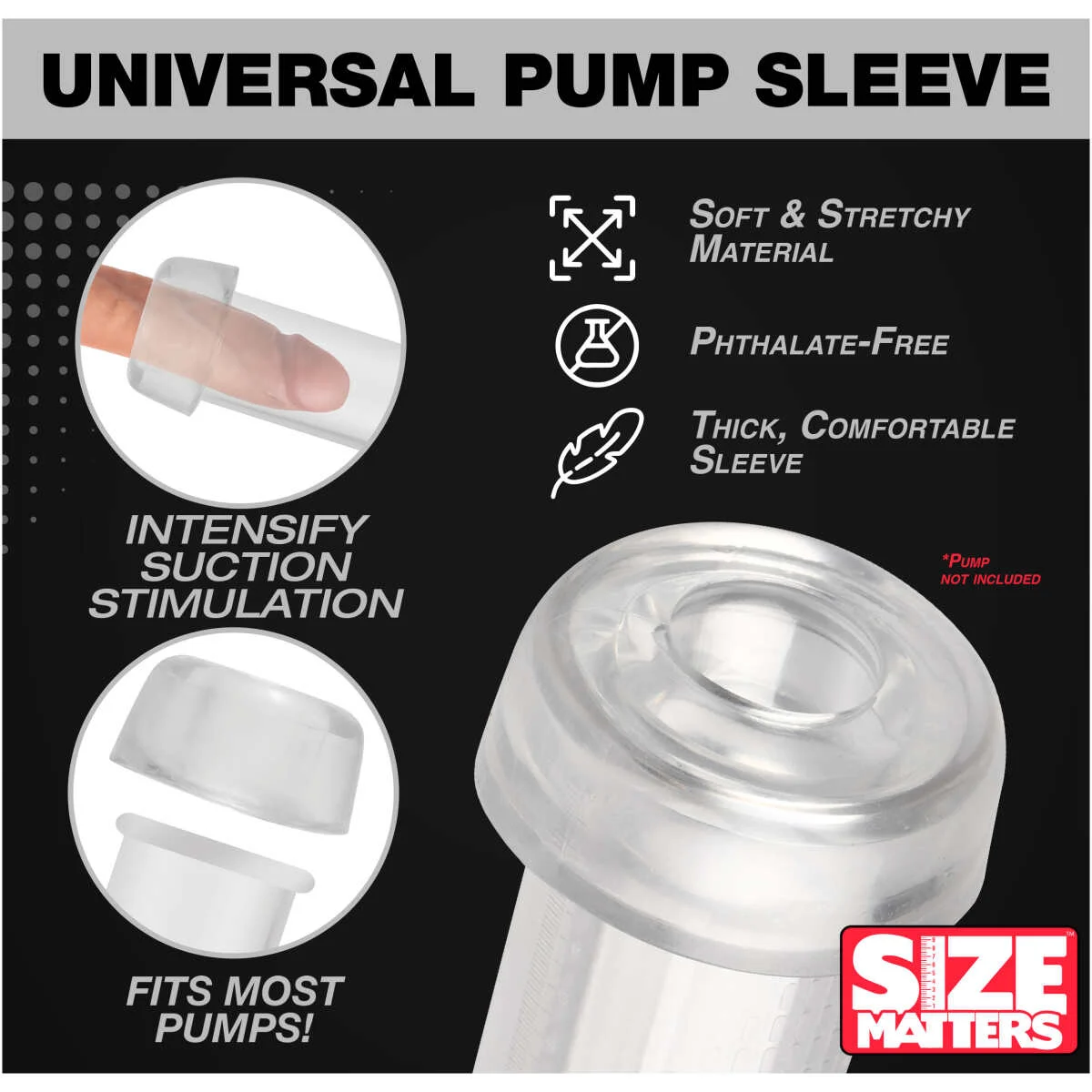 Introducing the Universal Pump Sleeve, an essential for anyone using a penis pump. Made from a soft, stretchy material, it easily adapts to most cylinder openings. The thick sleeve provides an excellent cushion, offering maximum comfort as you slide your shaft into the hard pumping cylinder. With body-safe, phthalate-free rubber, you can ensure the best care for your skin. Designed to enhance most pumps, it increases comfort, improves the seal, and boosts overall efficiency. Invest in the Universal Pump Sleeve for a more pleasant and effective pumping experience.